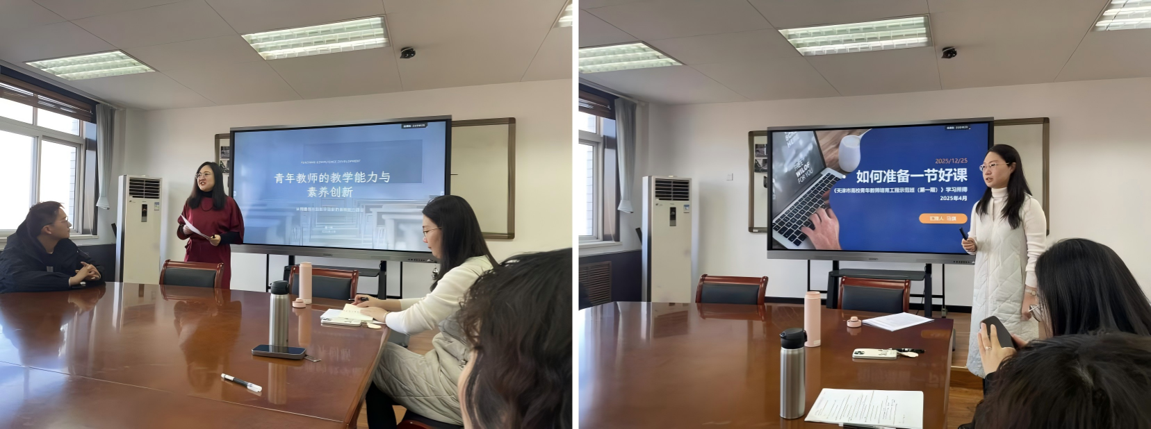 培训中,马旗老师则围绕“如何准备一节好课”,从教学结构设计、互动方式创新到细节打磨,层层剖析了一节好课的构建逻辑。张一然老师以“青年教师的教学能力与素养创新”为题,系统阐述了师德师风建设、课程思政融入、SPT结构化教学模型以及AI赋能教学等关键内容。两位老师的分享既有理论高度,又贴近教学实际,为参训教师提供了丰富而具操作性的教学策略。